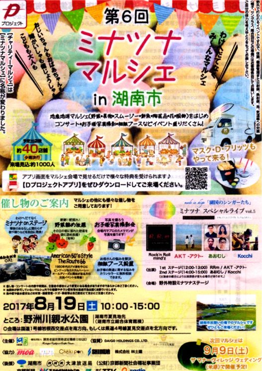 次回のライブは8/19(土)野洲川親水公園で行われるミナツナライブです。