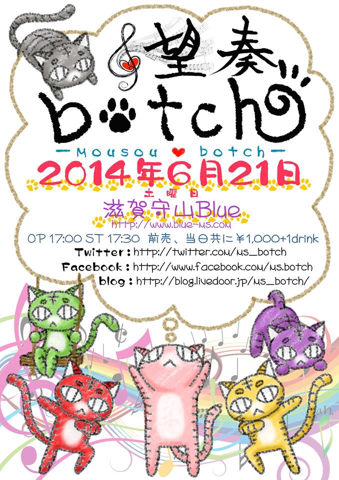 ★6/21(土)守山BLUEで参加させていただくことになりました【望奏botch】[モウソウ・ボッチ]のライブが決まりました♪