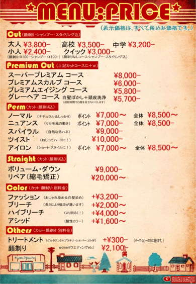 お店のmenu・priceを新しく作り変えました。