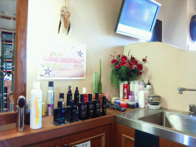散髪椅子に座ったところからのお客さん目線は