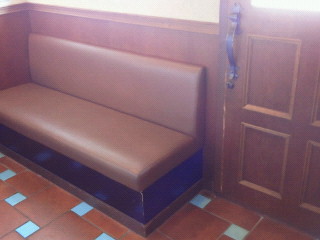 当店入口入って右一歩の位置に待ち合いベンチがございます